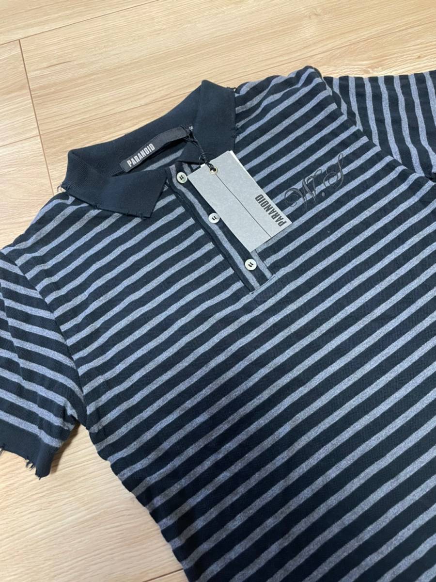 未使用☆[PARANOID] 初期 ダメージ加工 ボーダーポロシャツ XS ブラック パラノイド