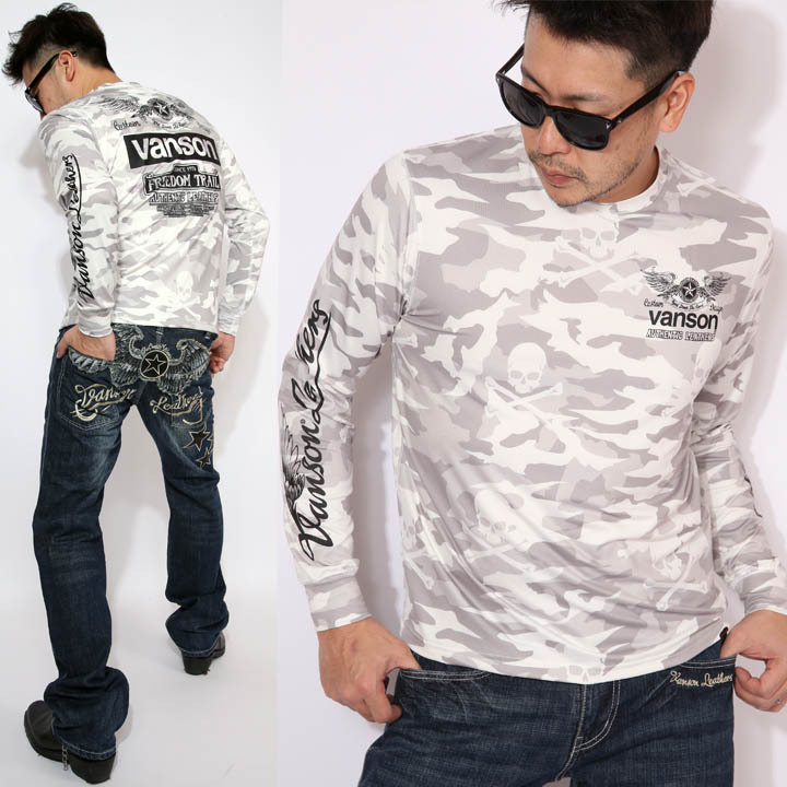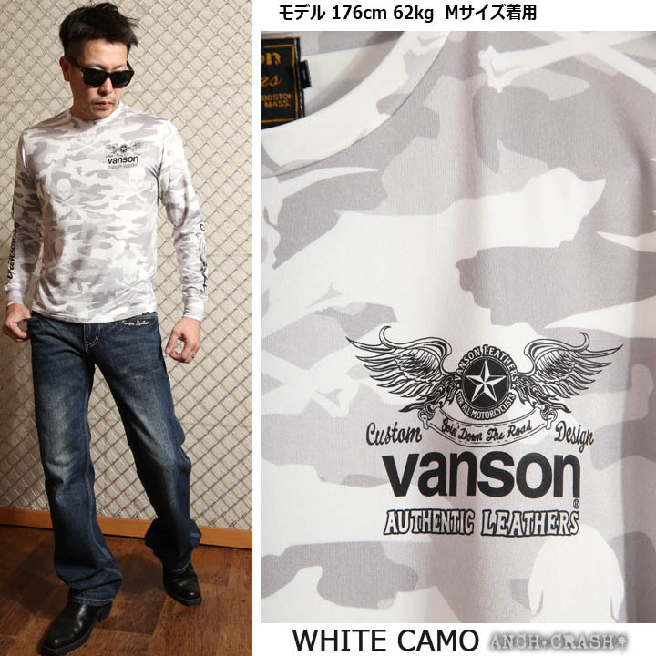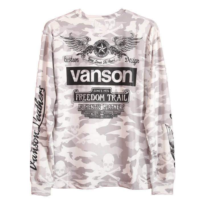 VANSON ドライ長袖Tシャツ ACVL-904 ホワイトカモ【Mサイズ】バンソン 当店別注 吸汗速乾 抗菌防臭 UVカット バイカー
