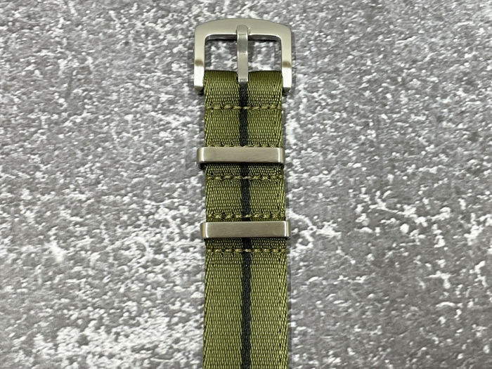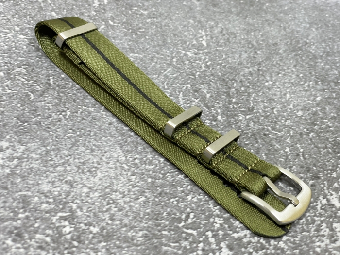 ラグサイズ:20mm 腕時計ベルト ファブリック ストラップ カラー:グリーン/ブラック 縫製 NATO 尾錠シルバー