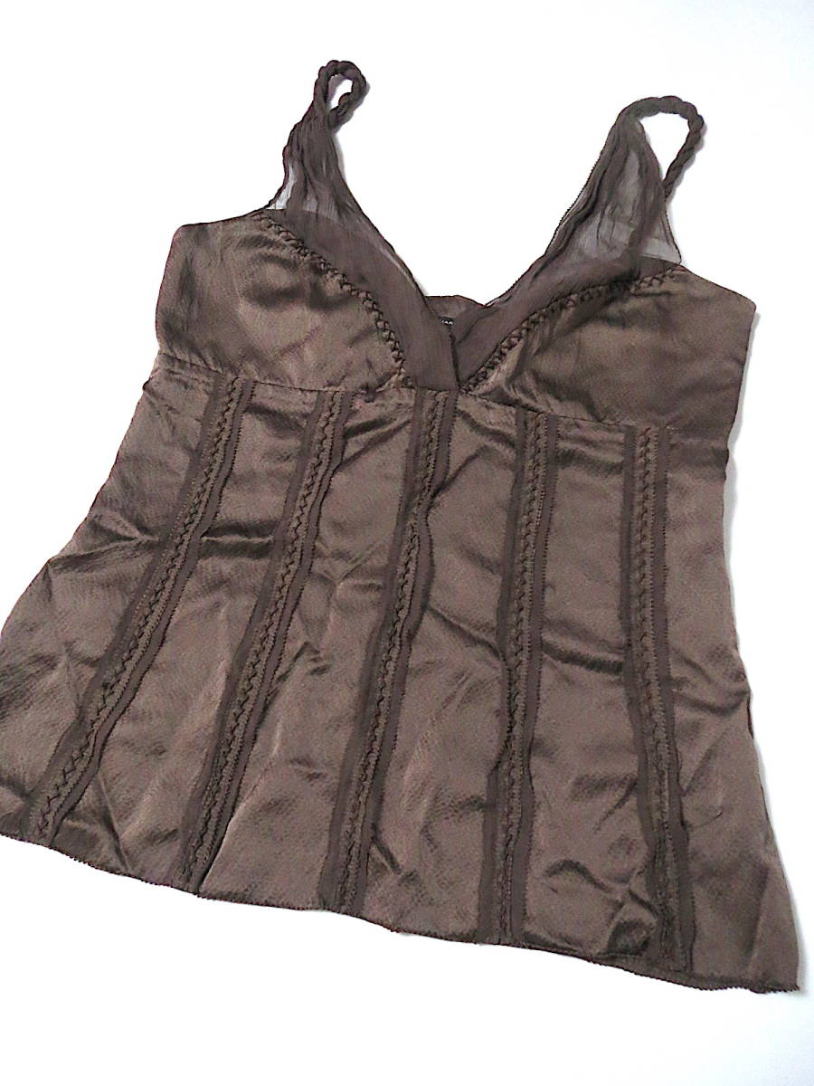 二点以上で送料無料! 2A42 ELIE TAHARI エリー タハリ 光沢 キャミソール レディース トップス 茶 ブラウン
