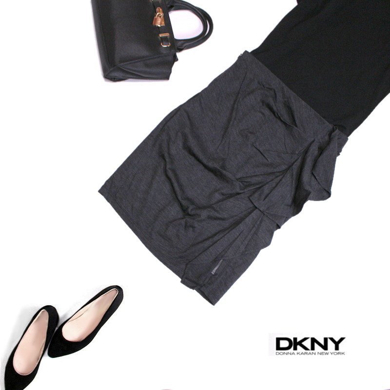 美品 DKNY ダナキャラン Donna Karan New York ■ 秋 冬 毛100% ストレッチ ニットスカート タイトスカート 7号 グレー
