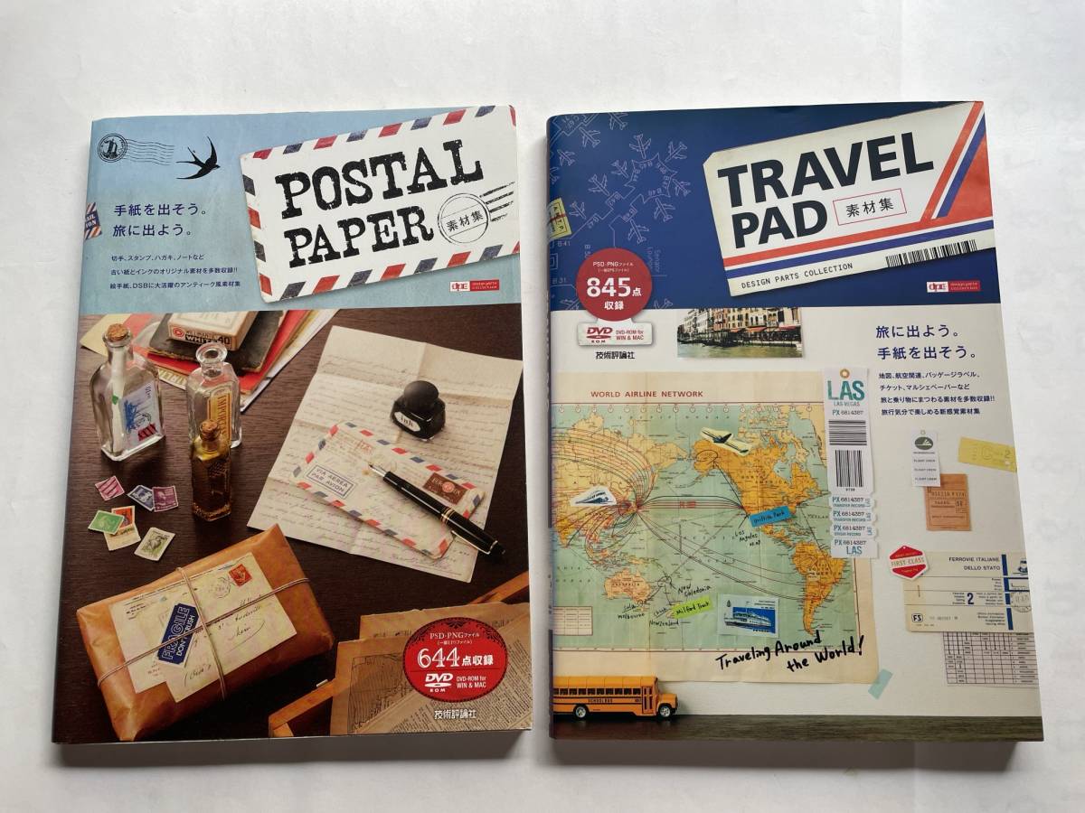 【著作権フリー デジタル素材集】『POSTAL PAPER 素材集』『TRAVEL PAD 素材集』 2冊セット DVD-ROM付属 技術評論社 ☆