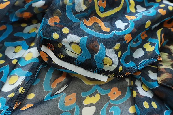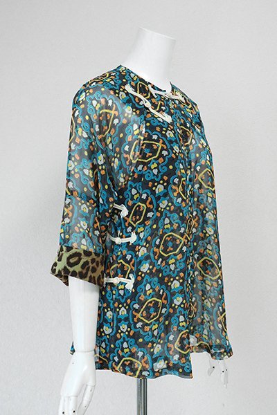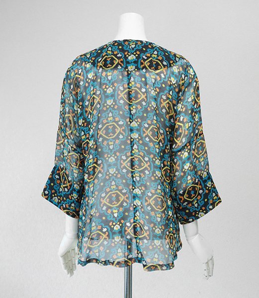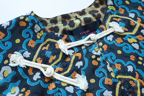tricot COMME des GARCONS ◆シフォン チャイナブラウス ブルーマルチ Sサイズ ノーカラー シアーシャツ トリコ コムデギャルソン ◆ZX9