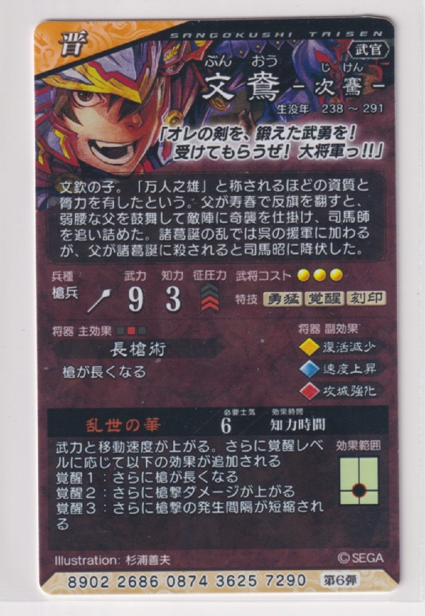 三国志大戦6 晋 6弾 SR 文鴦 乱世の華 長槍術 コレクション用