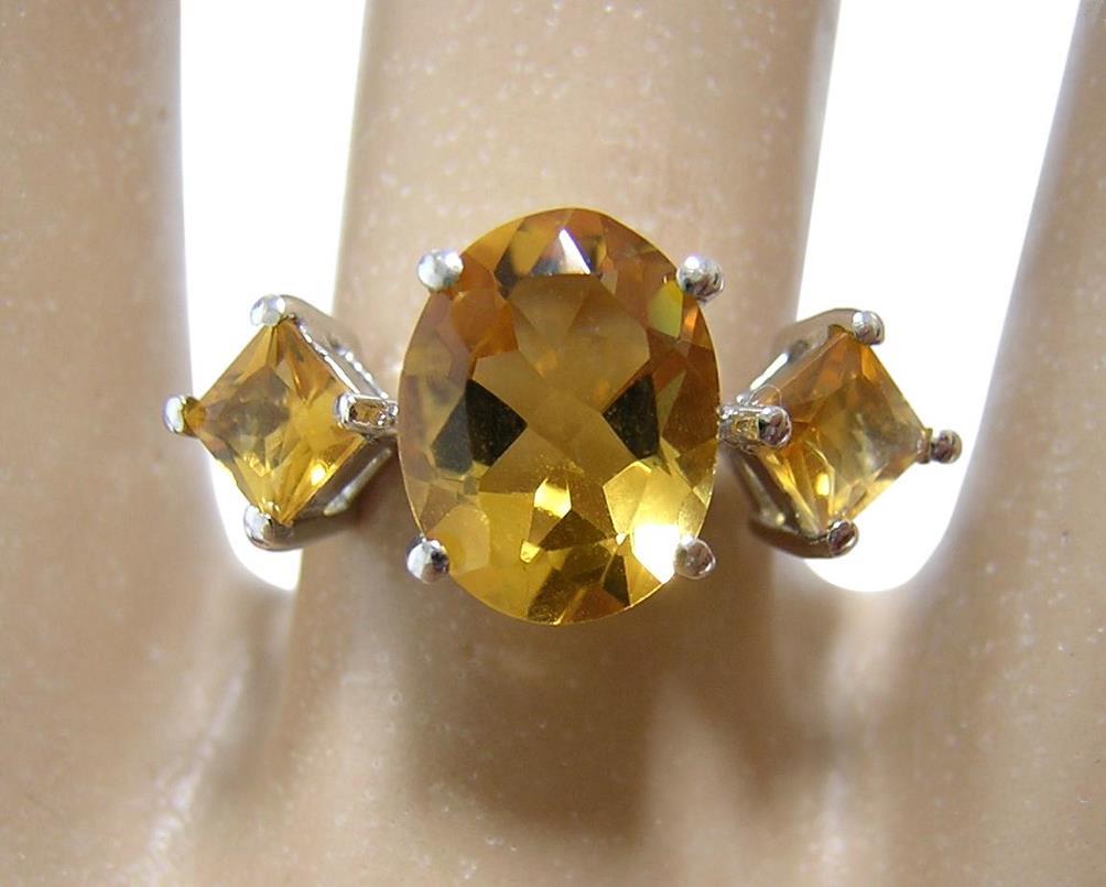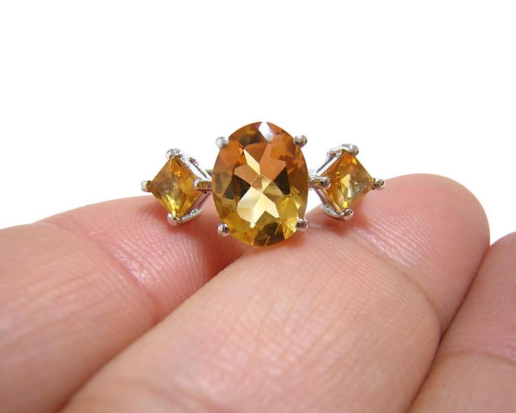 中央のシトリンの大きさは約10×7.5mmです。 【中石】天然シトリン 【産地】ブラジル産 【カット】オーバルカット、スクエアカット 【脇石】キュービックジルコニア 【重さ】3.1g 【サイズ】11号 (お直しは承れません) デザイン部:縦10mm×横25mm 【素材】シルバー925 (14金ホワイトゴールド仕上げ) 【刻印】925 【状態】新品 ※地金部分に製作時からの小傷やスレがあります。 |