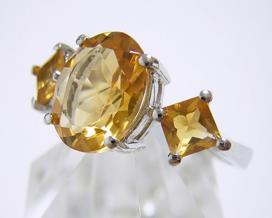 ブラジル産の天然シトリンとキュービックジルコニアを使用したデザインリングです。