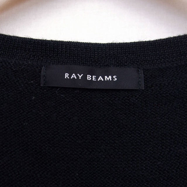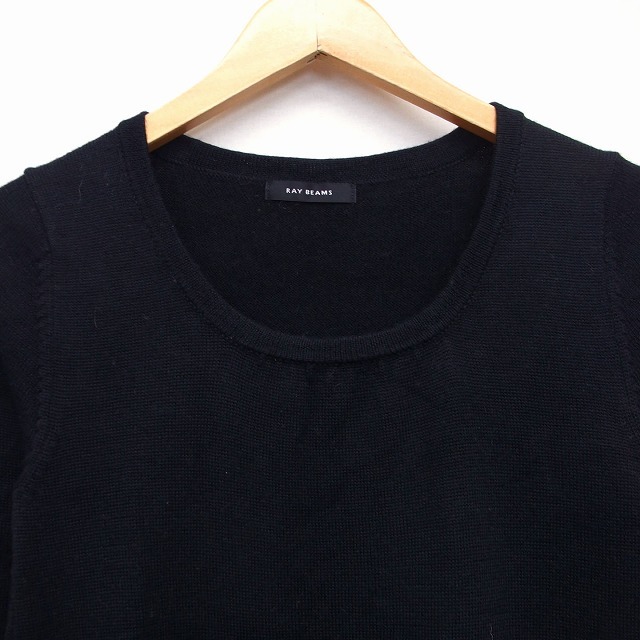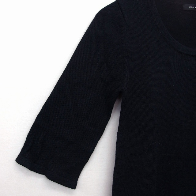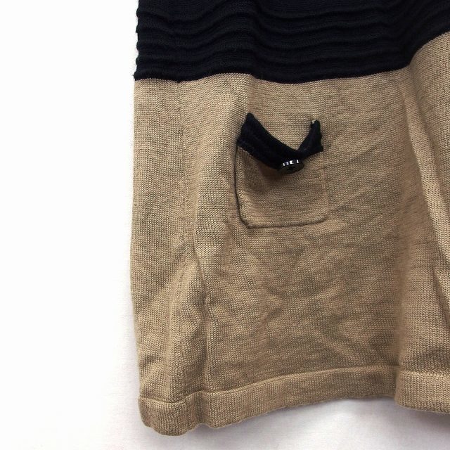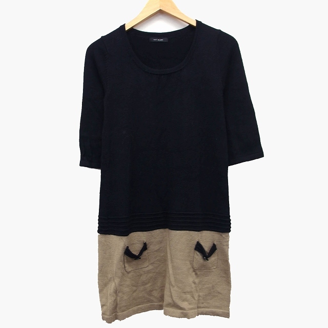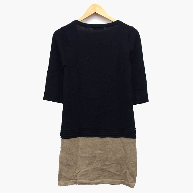 レイビームス Ray Beams ニット ワンピース Aライン 膝丈 七分袖 丸首 ウール混 切替 バイカラー ブラック 黒 ブラウン 茶 /HT5 レディース