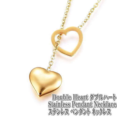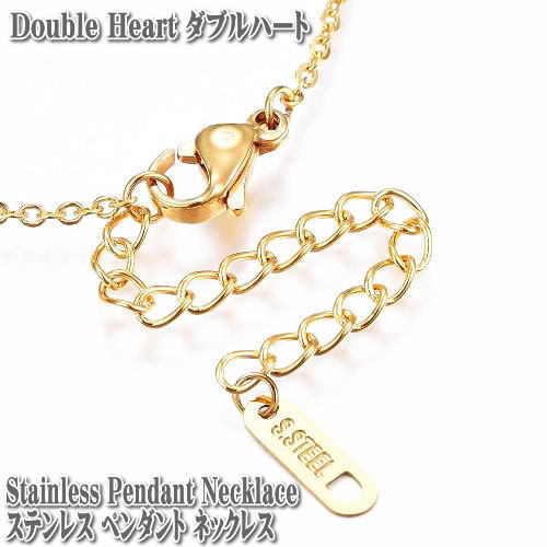 ステンレスジュエリー ダブルハートモチーフ ゴールド ステンレス ネックレスダブルハート ハート Heart Stainless | |