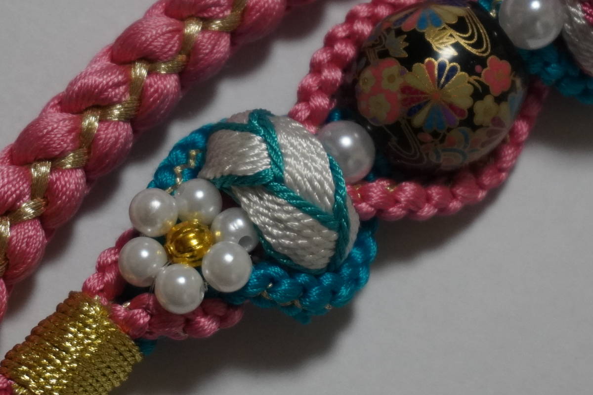 一般に振袖用の飾りつき丸帯締めですが!!浴衣着用時の遊び感覚の帯締めとして、また髪飾りにも使うといって買っていかれた方がおられましたので、こちらのIDでも出品することにしました。