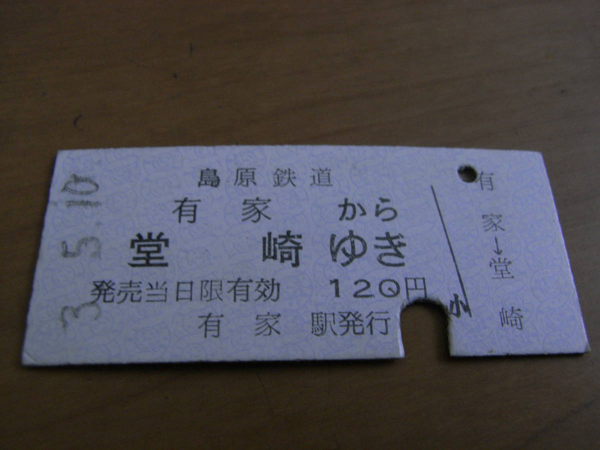 島原鉄道 有家から堂崎ゆき 120円 平成3年5月10日 有家駅発行 ●廃線区間