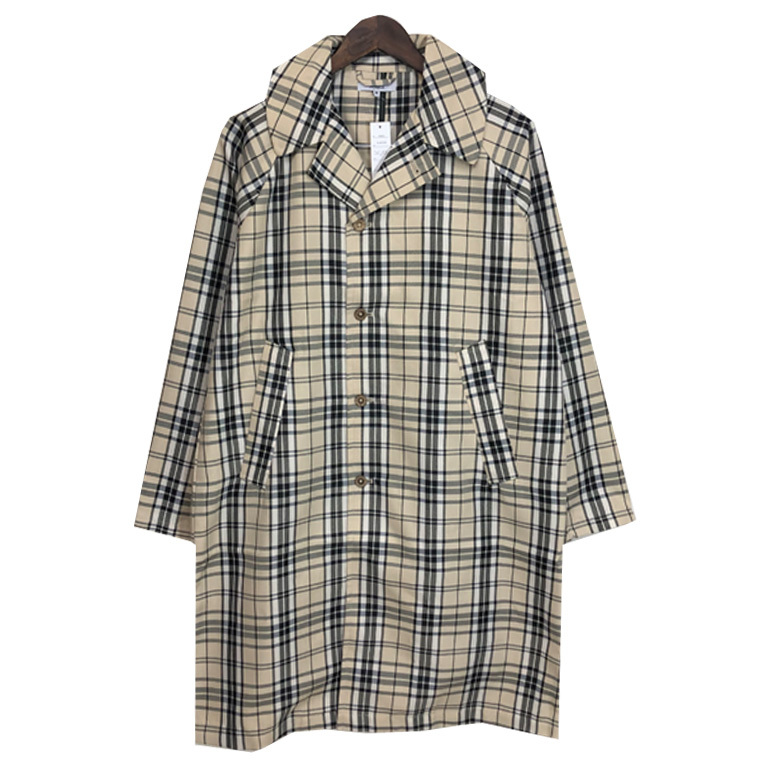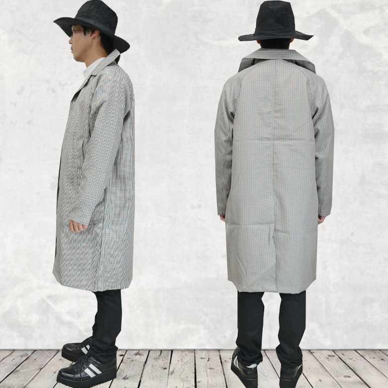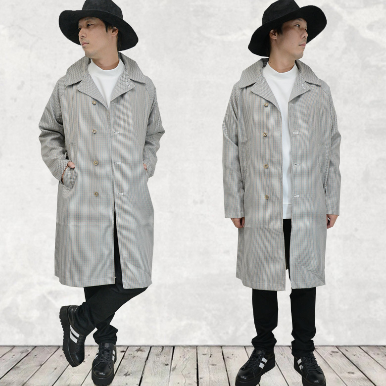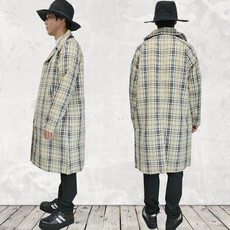 軽やかな質感のチェック柄ゆったり系ステンカラーコート ショップコート。