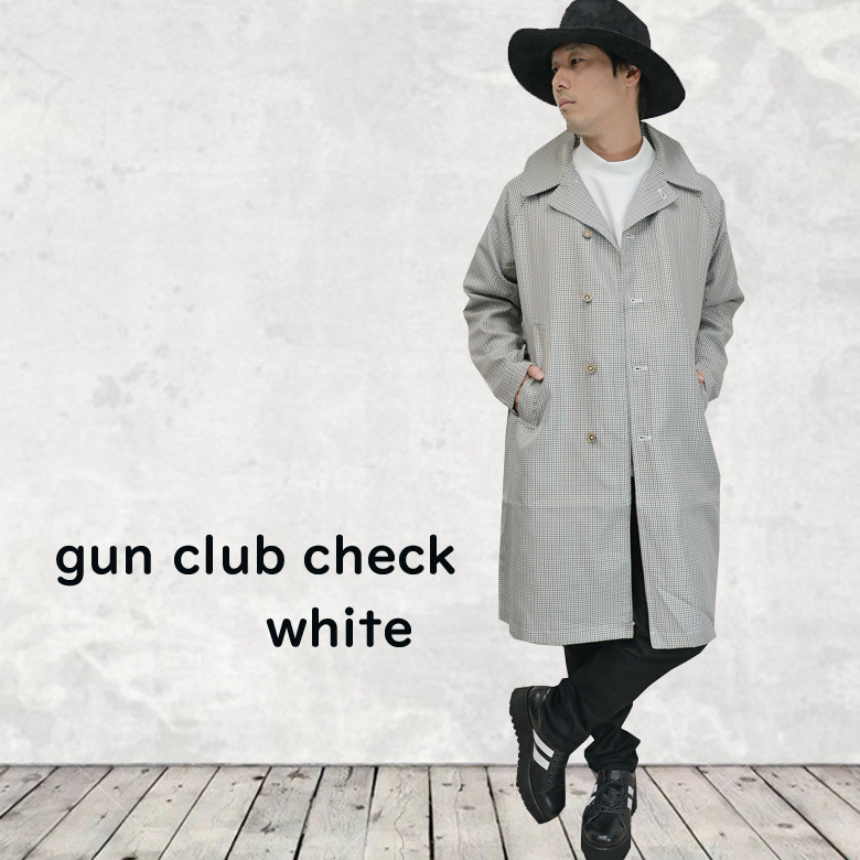 チェック柄ゆったりロング丈テンカラーコート12643 新品ガンクラブホワイトM