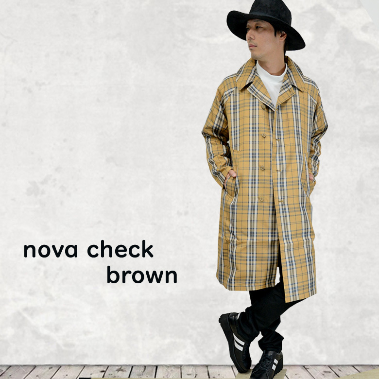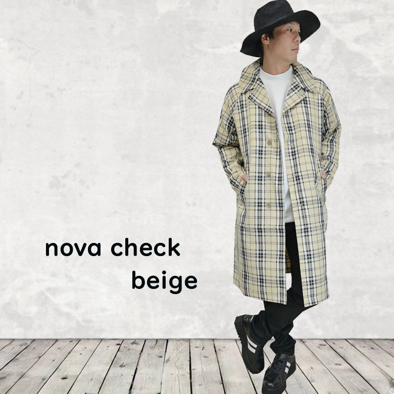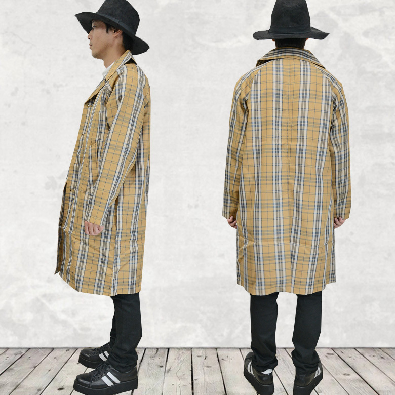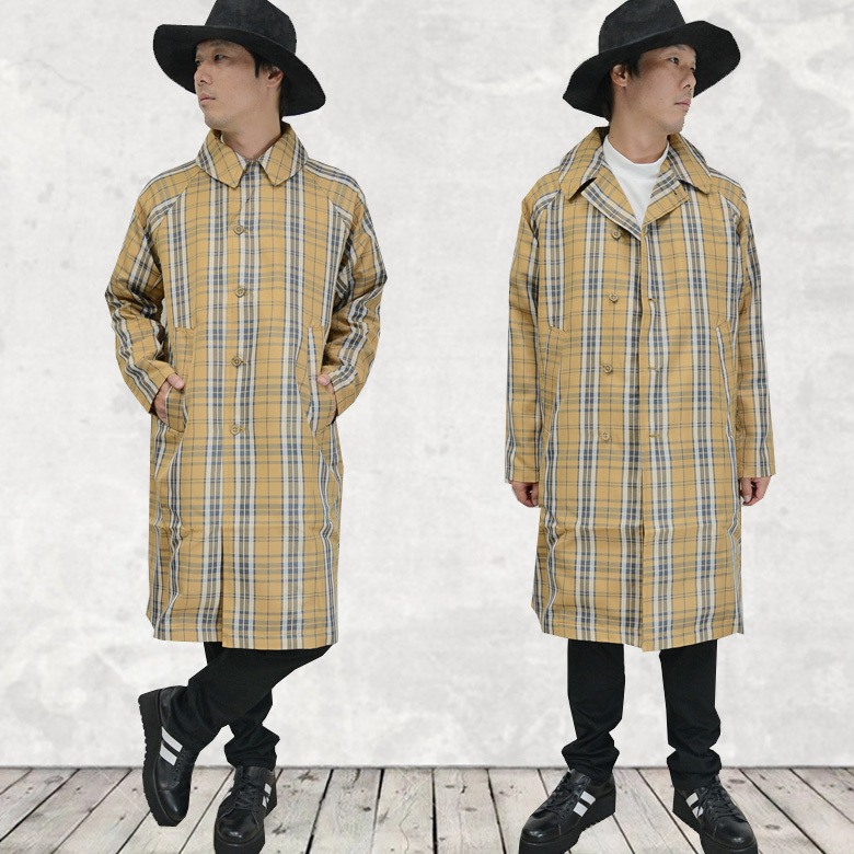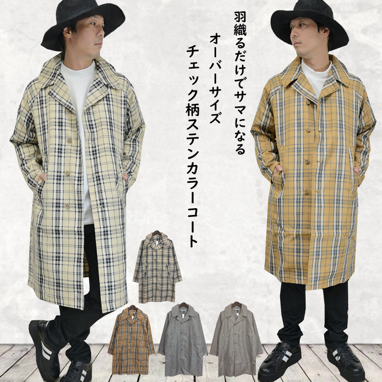 軽やかな質感のチェック柄ゆったり系ステンカラーコート ショップコート。