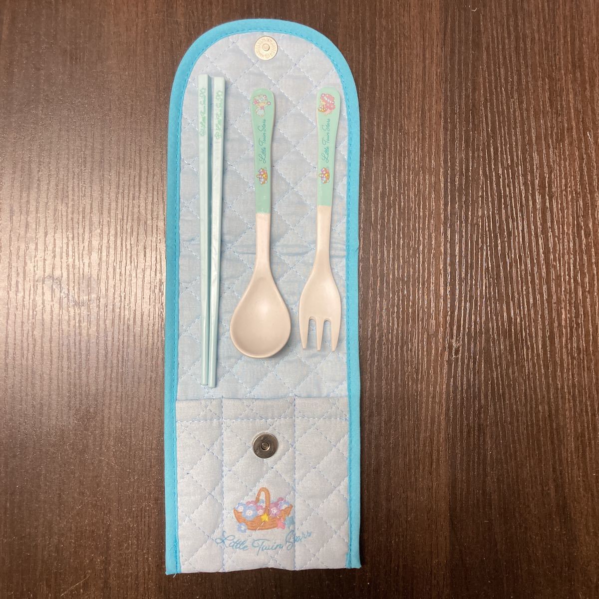 ●即決!送料無料!●カトラリーセット リトルツインスターズ●キキララ/サンリオ//箸/スプーン/フォーク/メイクポーチ・メイクブラシ入れ