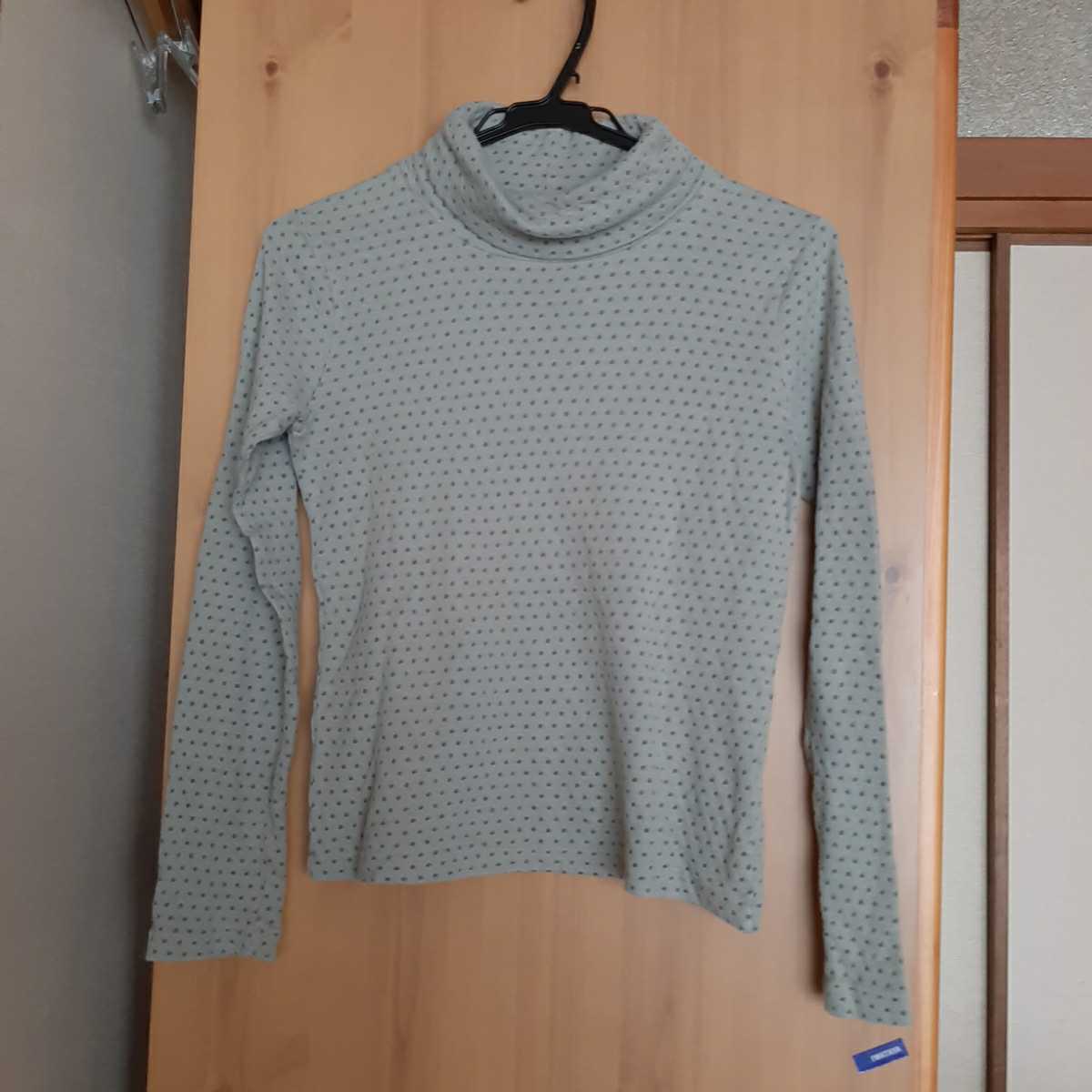 ピンクアドベのグレーにかすれドット柄のやわらかタートルネックカットソー* 送料込み☆