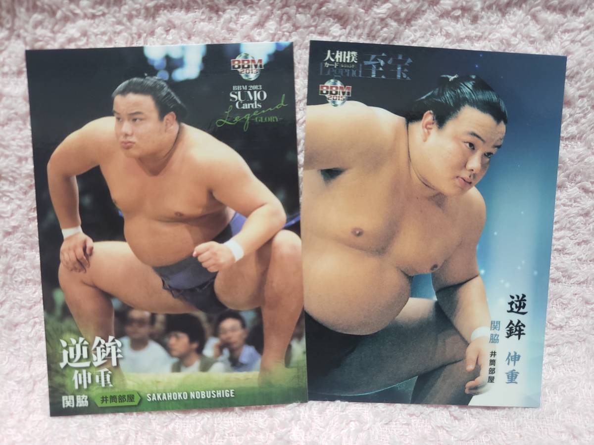 ベースボールマガジン社(BBM社)より発売された「大相撲カード」に封入されておりました逆鉾信重関のレギュラーカード2枚セットになります。