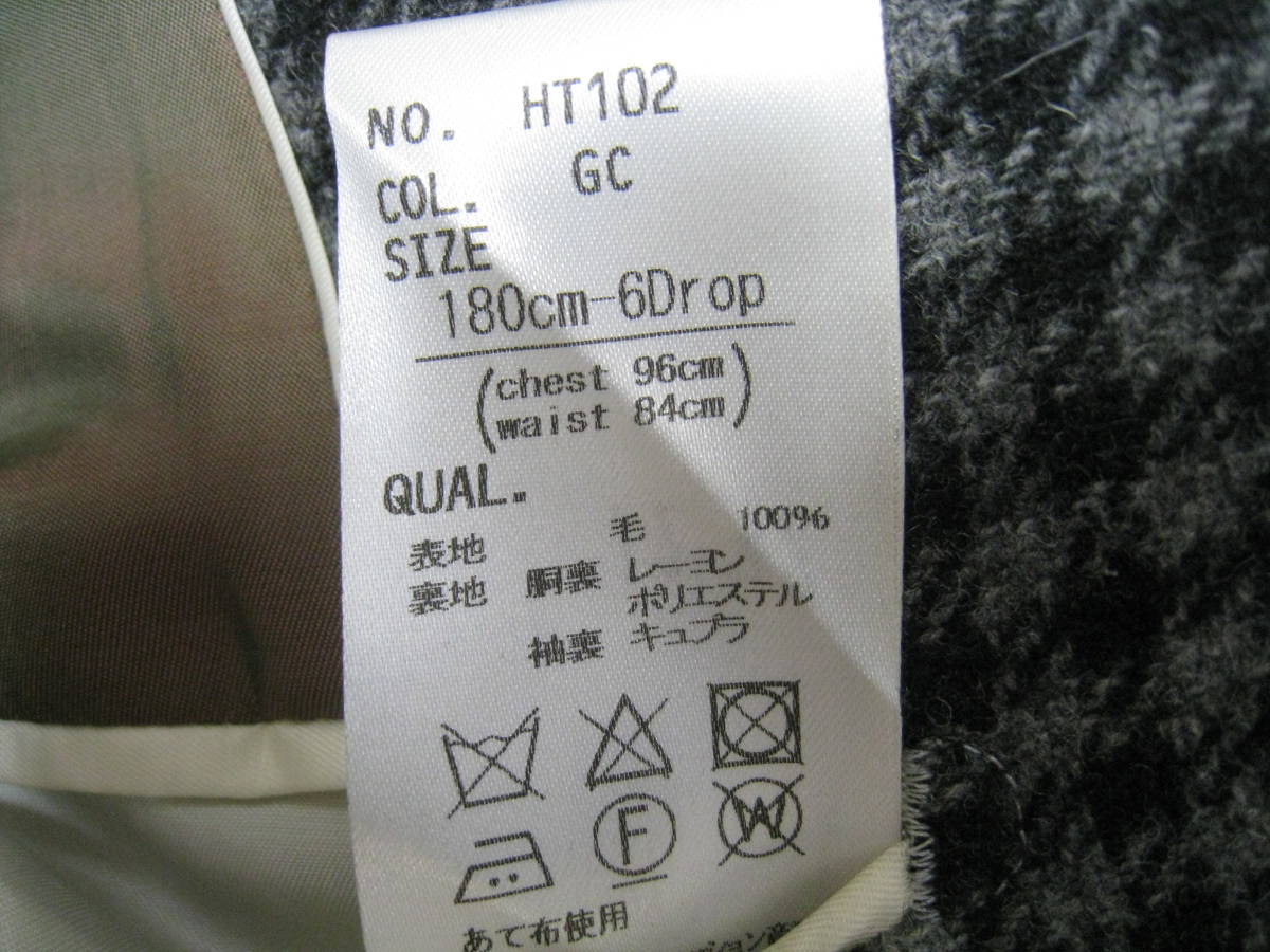 ★blazer's bank.com◆ウール100% NOVALAN生地使用 チェック柄 テーラードジャケット 三つ釦段返り メンズ サイズ180cm-6Drop C96/W84★ | ||||