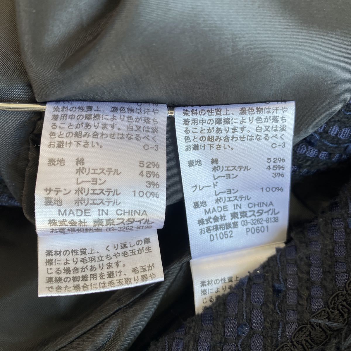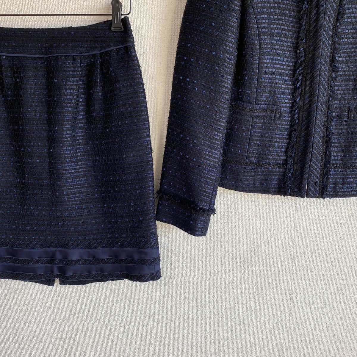 【22オクトーブル ノーカラー スーツ 38 W66 濃紺 ツイードDMW】