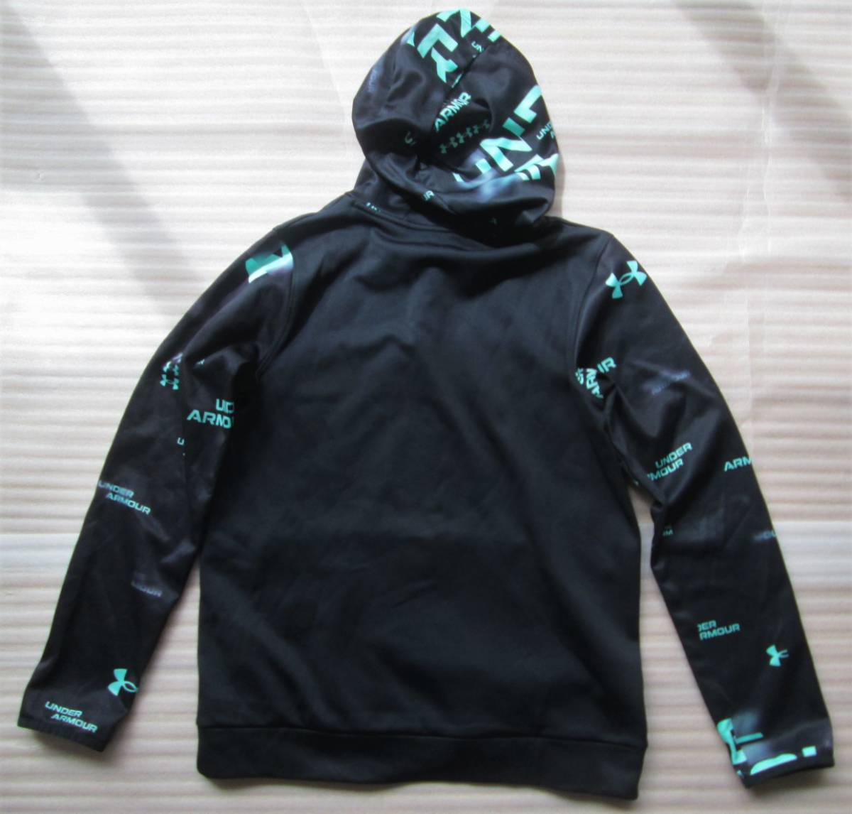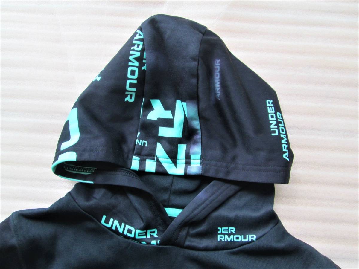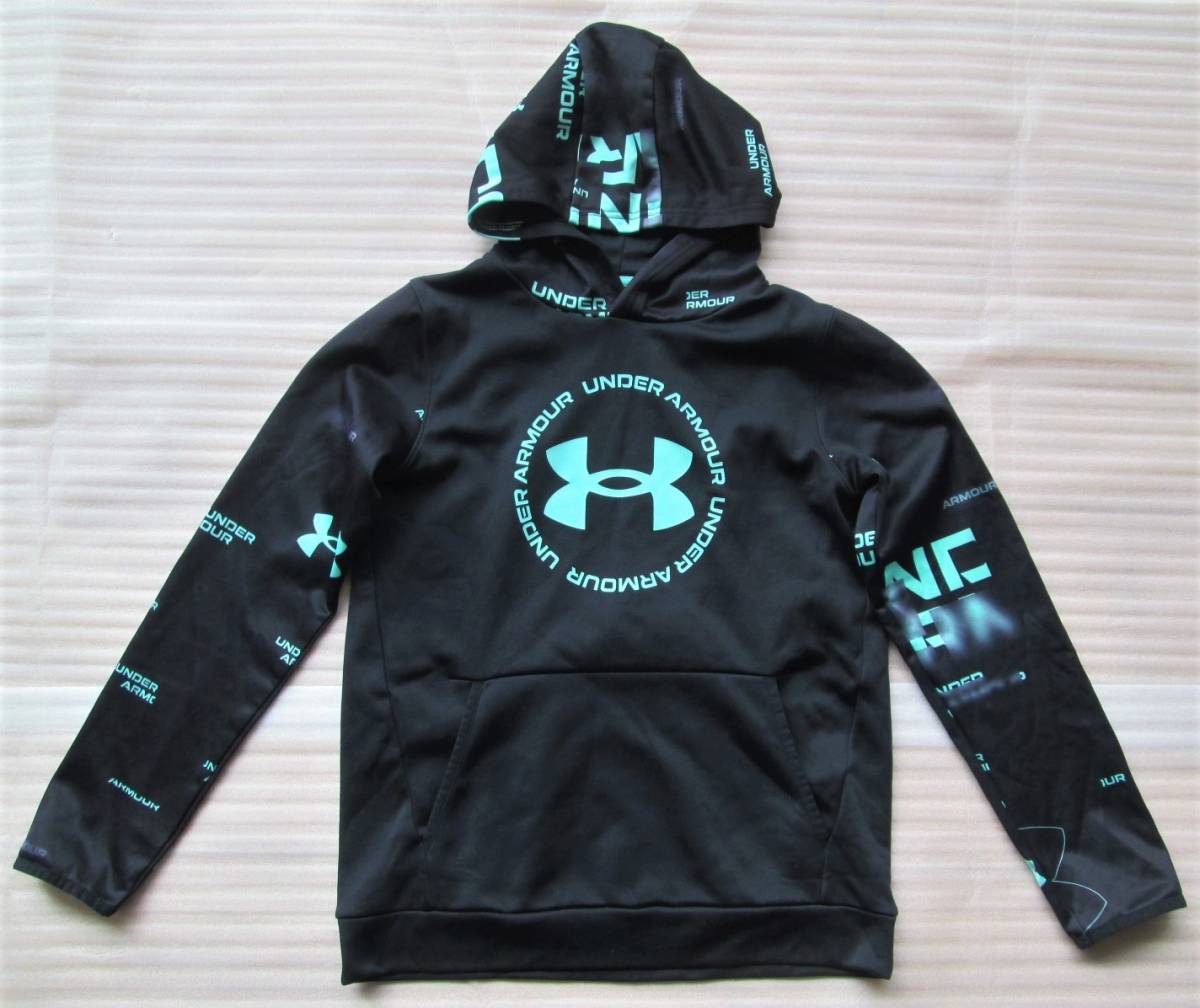 即決!【未使用】UNDER AMOUR アンダーアーマー ◆ パーカー トレーナー 裏微起毛フリース デカロゴ 160サイズ 黒・エメラルドグリーン