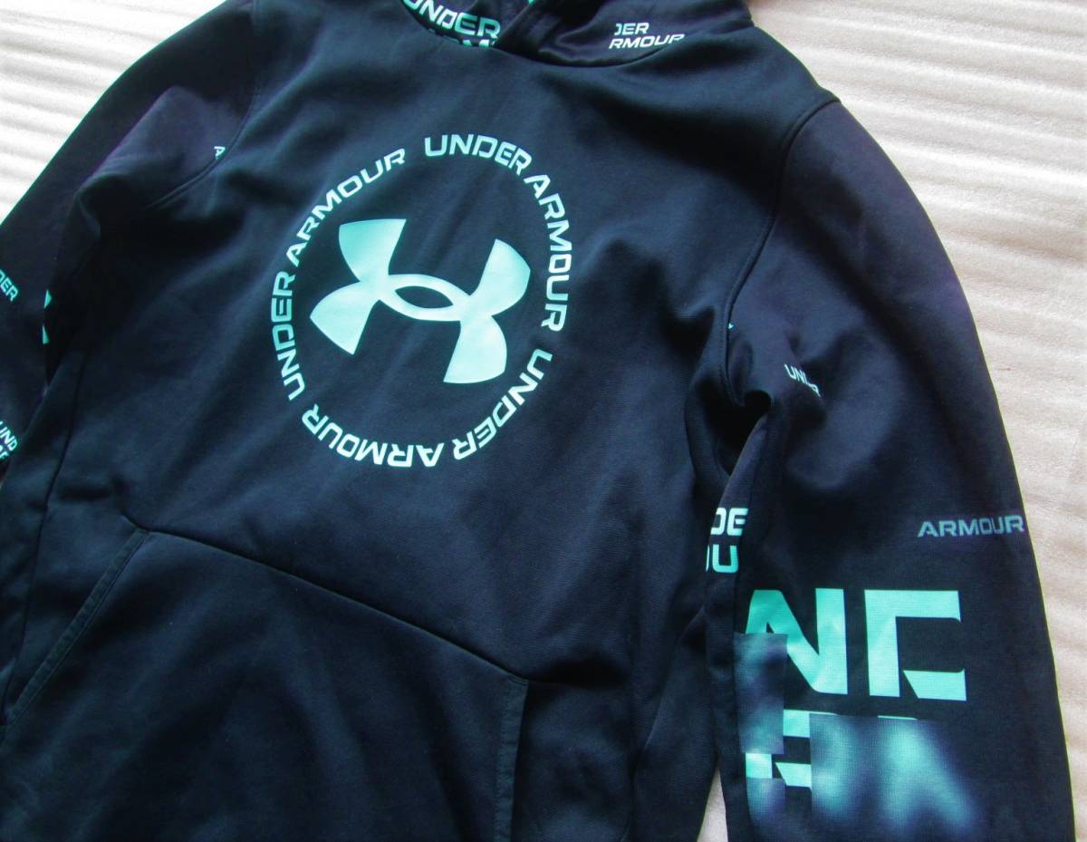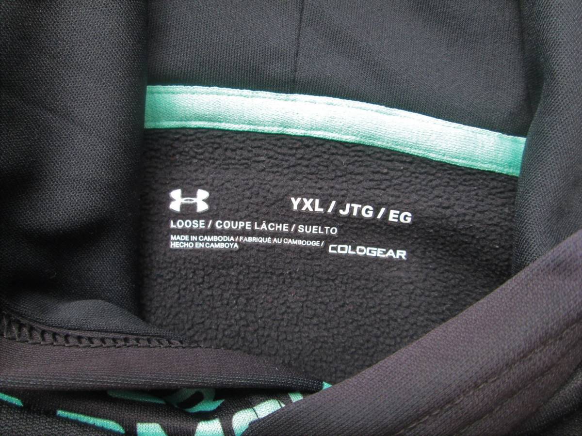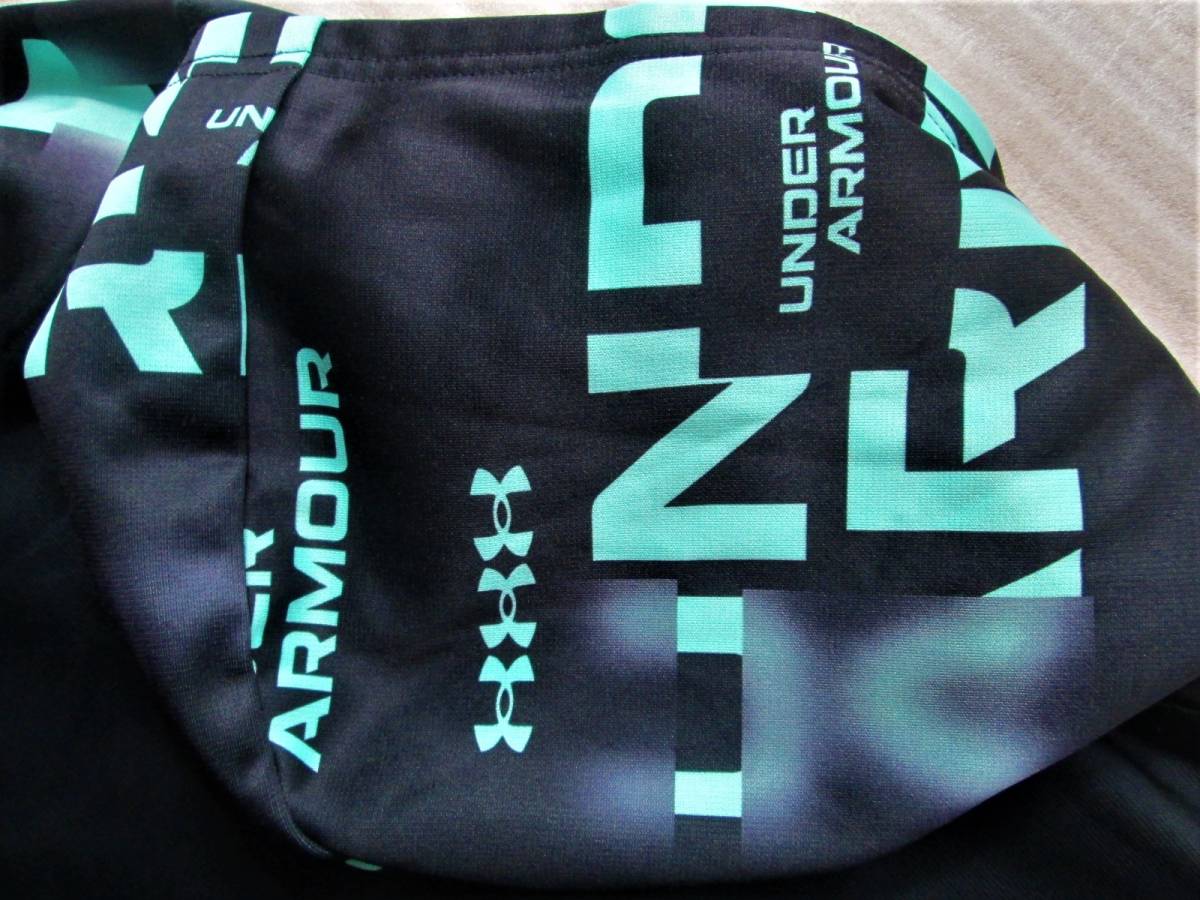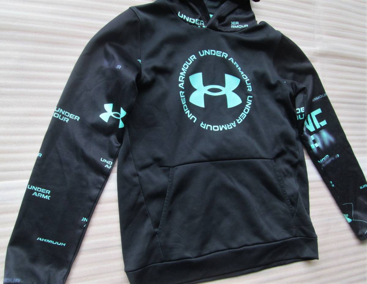 即決!【未使用】UNDER AMOUR アンダーアーマー ◆ パーカー トレーナー 裏微起毛フリース デカロゴ 160サイズ 黒・エメラルドグリーン