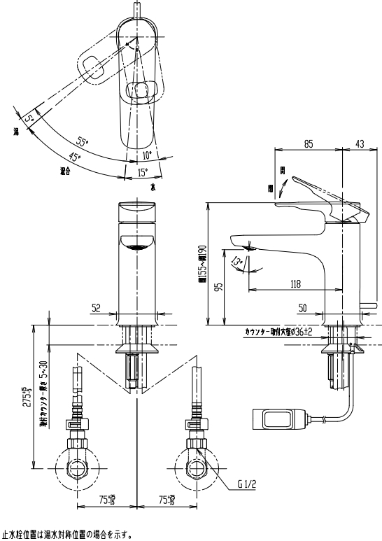 ポップアップ式排水金具(ワイヤータイプ)と組み合わせてご使用ください。