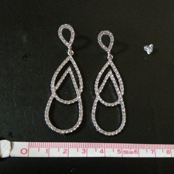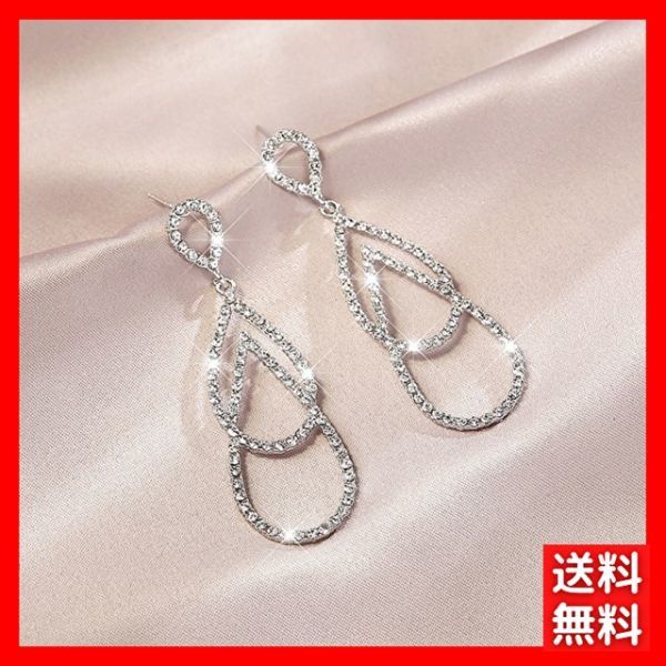ピアス S925針 シルバー 水滴 ロング ラインストーン レディース 韓国 雫 ファッション ジュエリー 幾何学的 ノーブランド #C1200-3