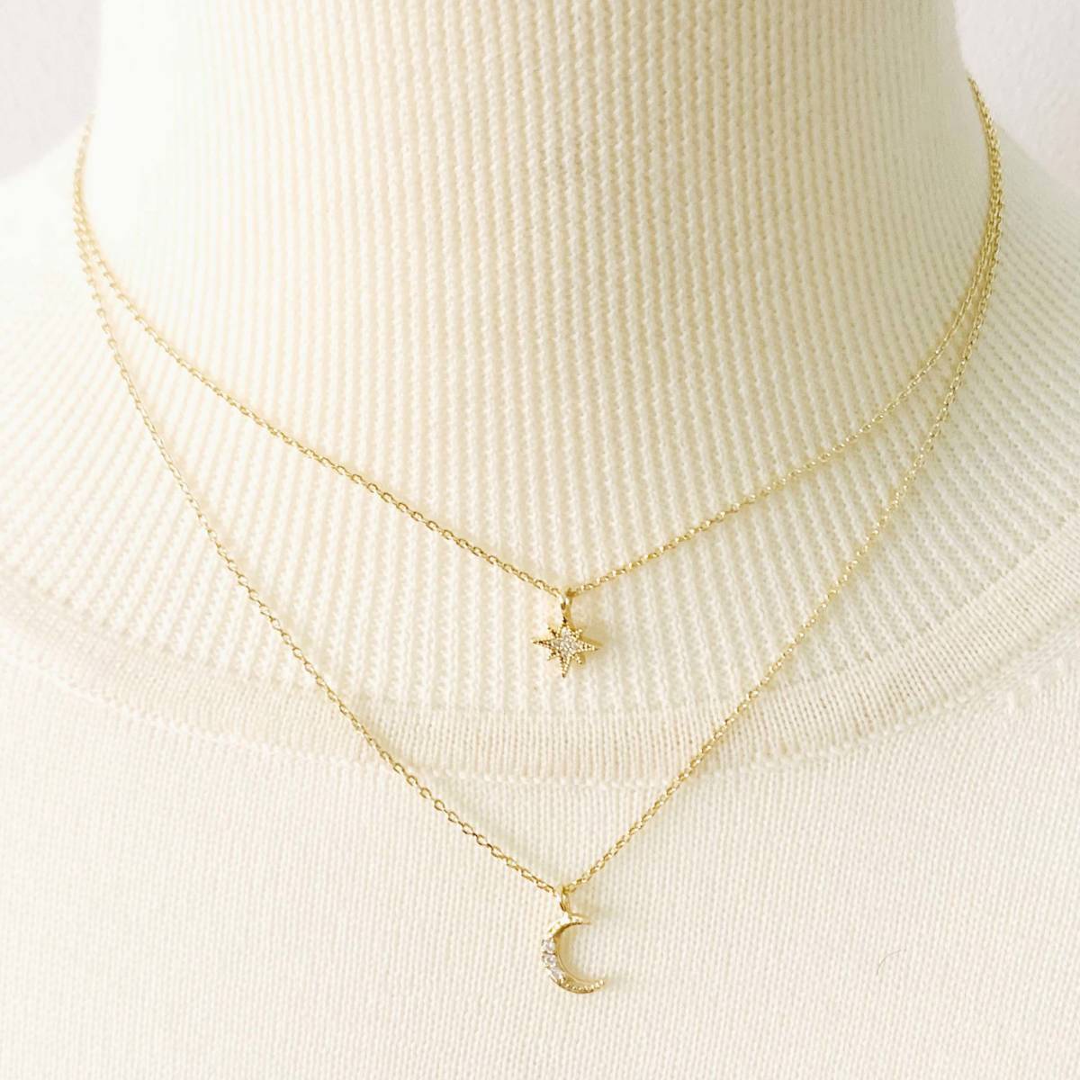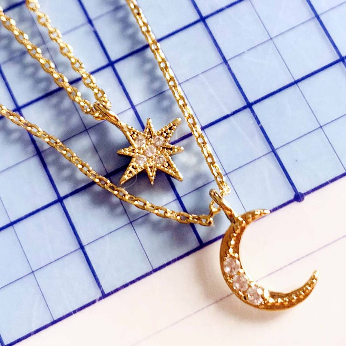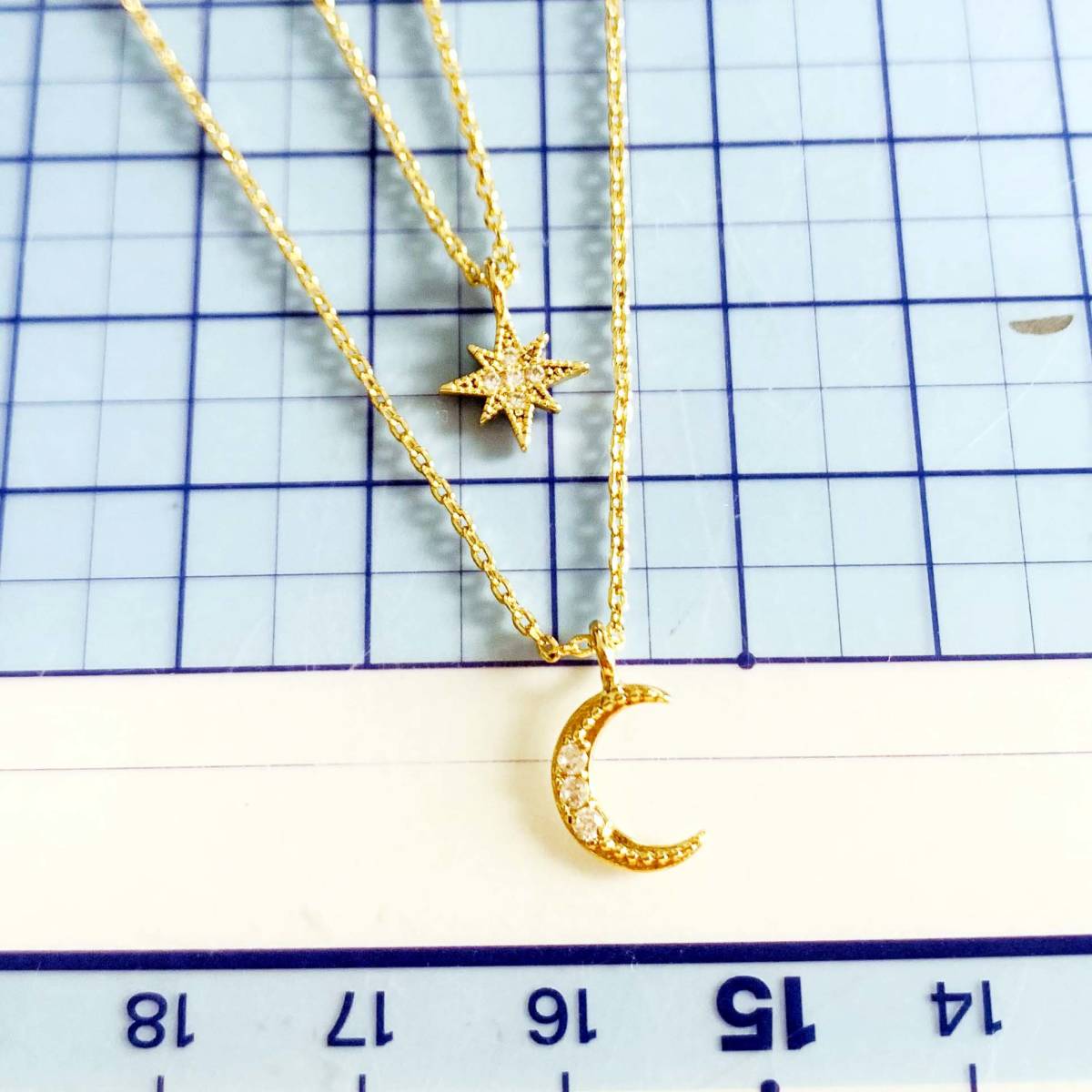 保管品未使用 星と月 ゴールド 2連ネックレス No.S396