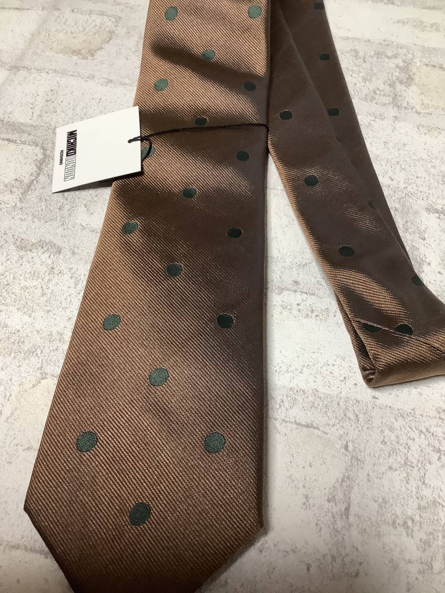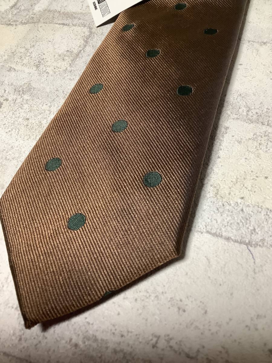 新品ミチコロンドン 日本製ネクタイ お買い得 茶色 グリーンドット柄 お買い得