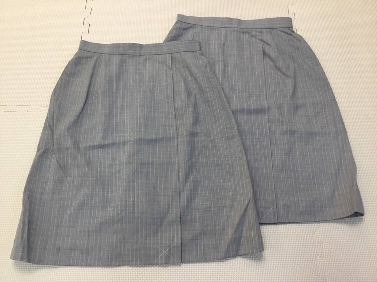 S5003 新品【HINUCK】スカート 7号 S グレーストライプ柄 2枚組■ハイナック■事務服■OL■受付■制服■オフィス■オールシーズン