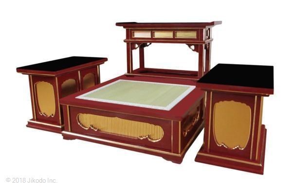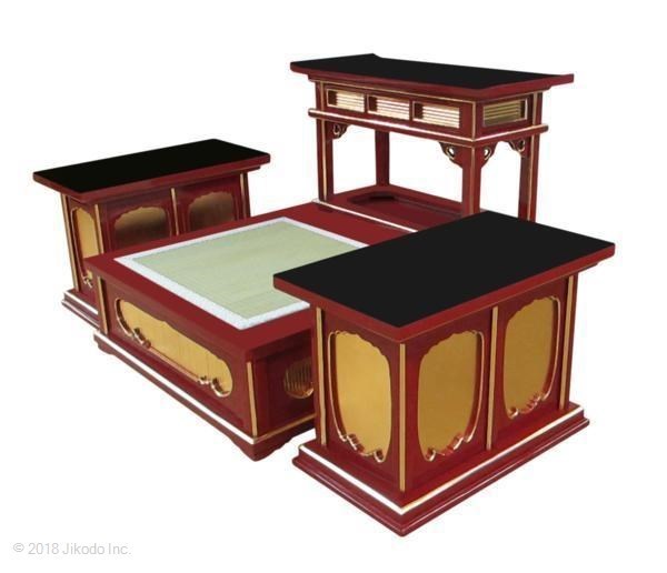 【寺院仏具】朱塗り 礼盤式登高座セット 導師机付 安心の国内自社工場製作品(受注生産品)(商品番号10106s)