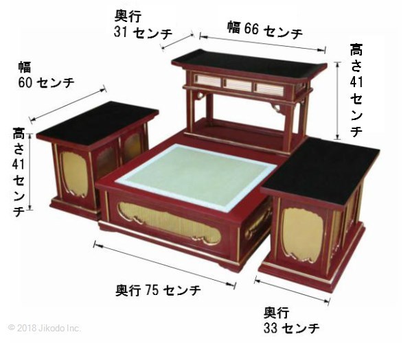 商品名 朱塗り 礼盤式登高座セット 導師机付 導師机サイズ