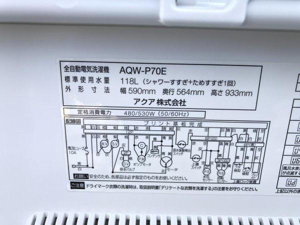 【洗濯槽分解洗浄済み】AQUA アクア 2016年 AQW-P70E 7.0kg 洗濯機です。