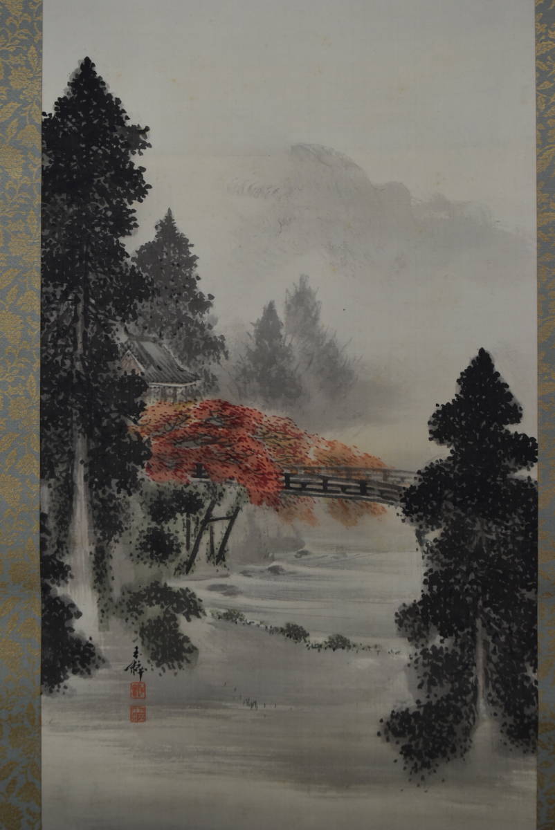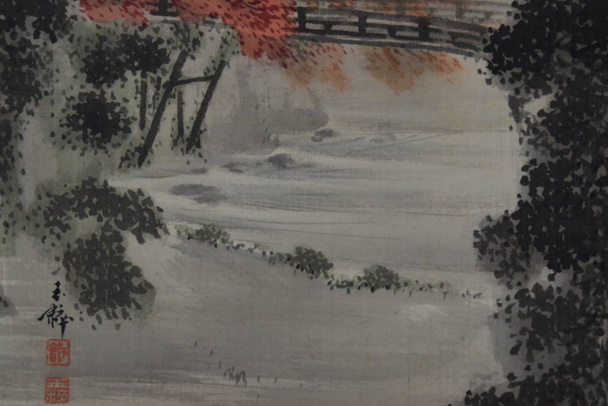 真作/長谷川玉粹/長谷川玉峰の子/五十鈴川紅葉図//掛軸☆宝船☆AA-271