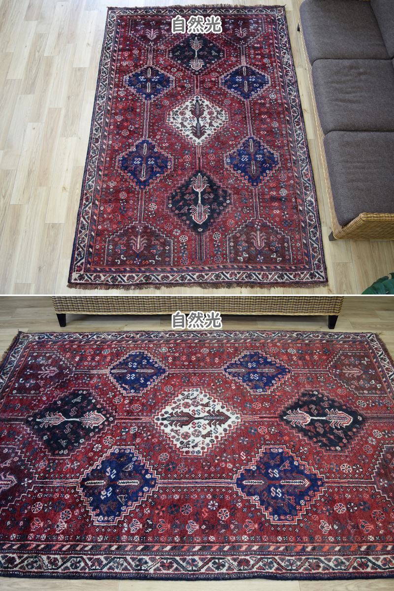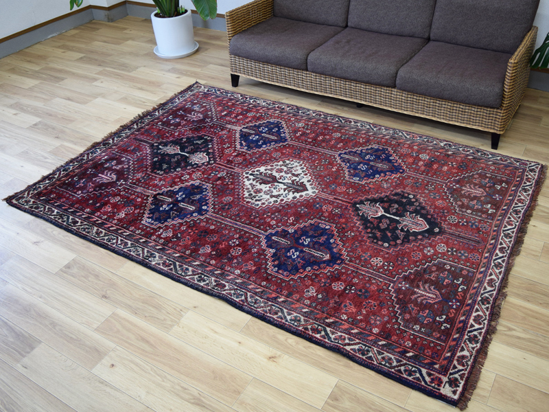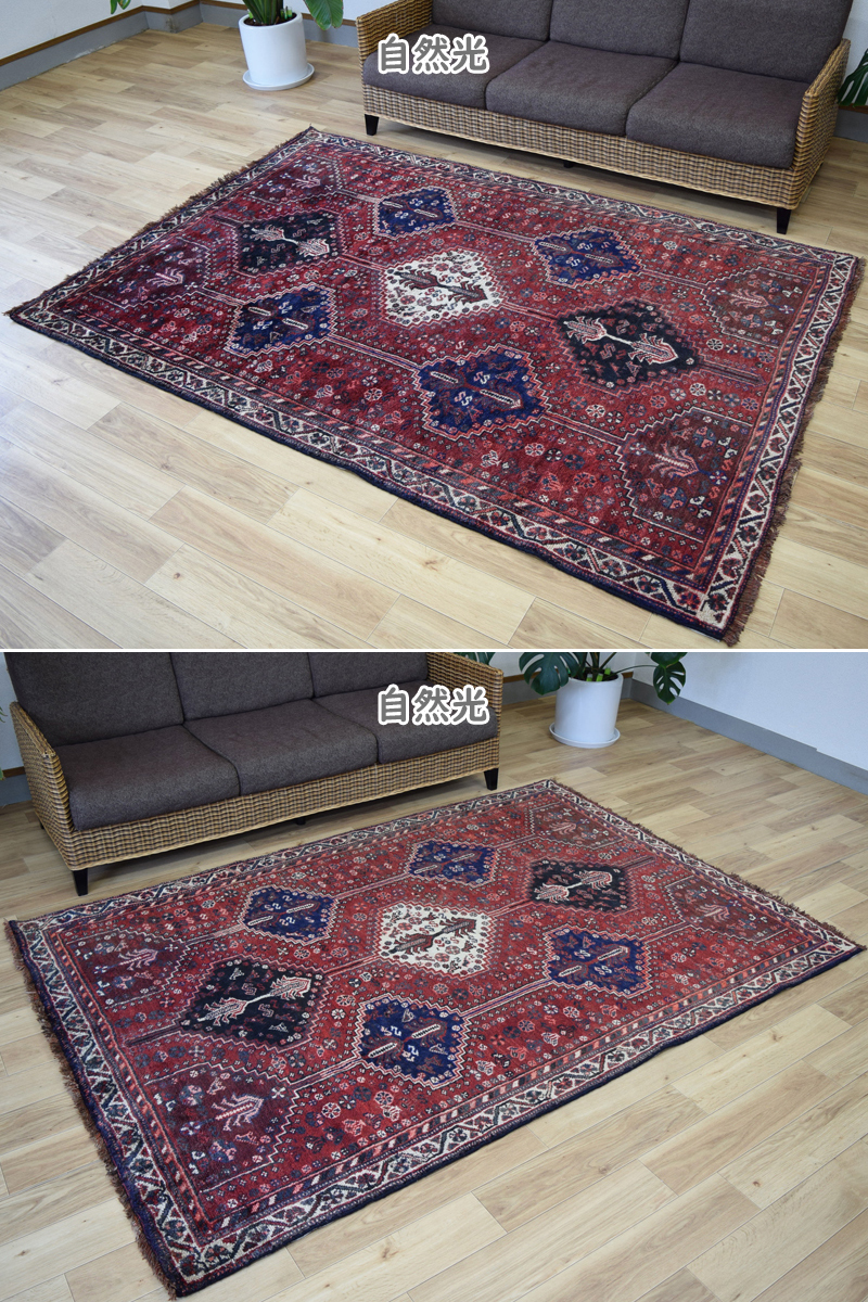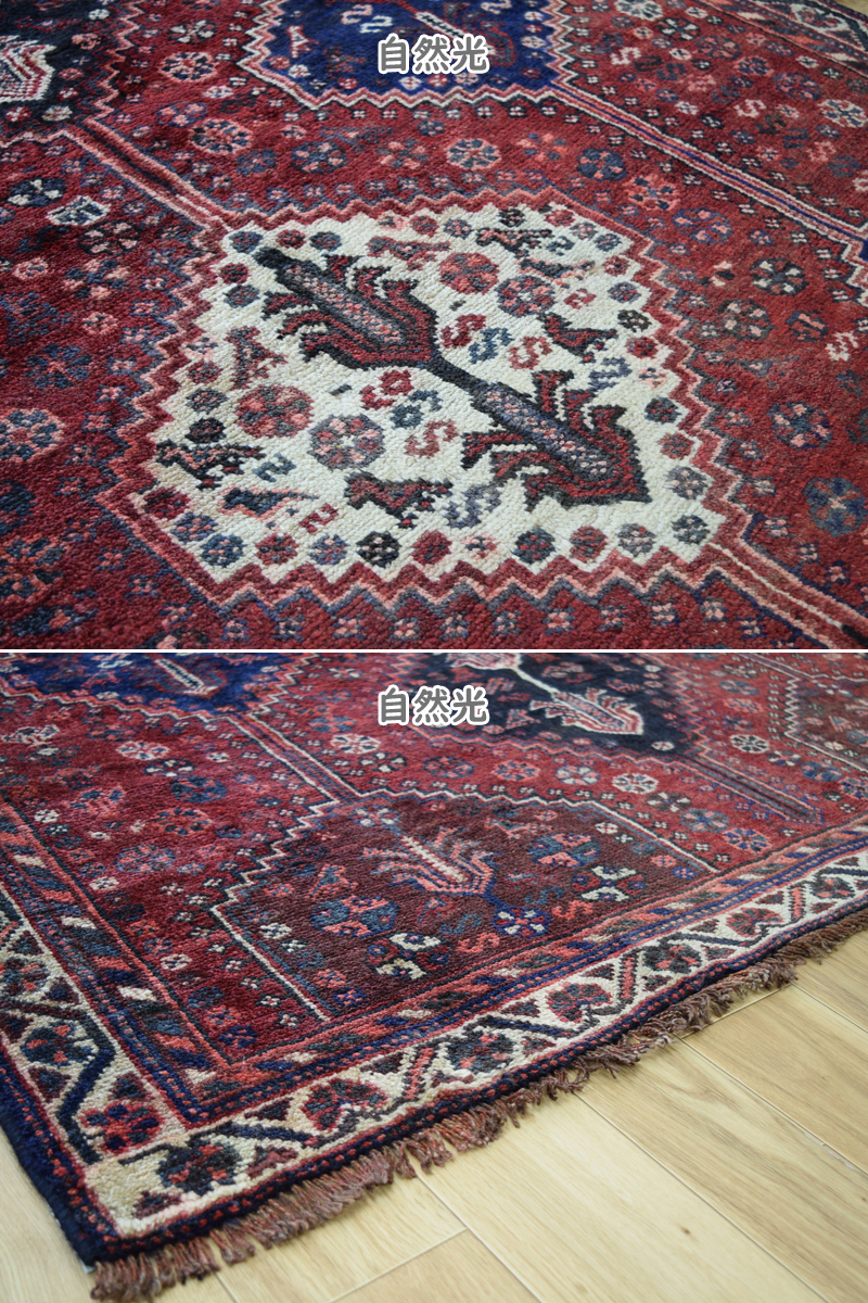良品 ペルシャ 部族絨毯 シラーズ 縦2.5m 横1.5m 3.5m2 ~3.5帖 No.AD600 - 226 x 155 cm ウール 手織り ラグ カーペット 赤
