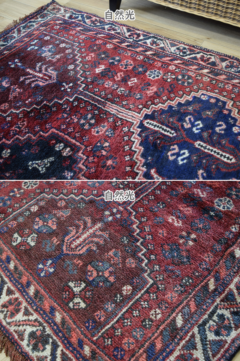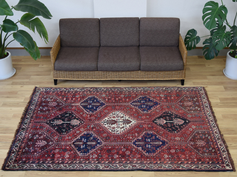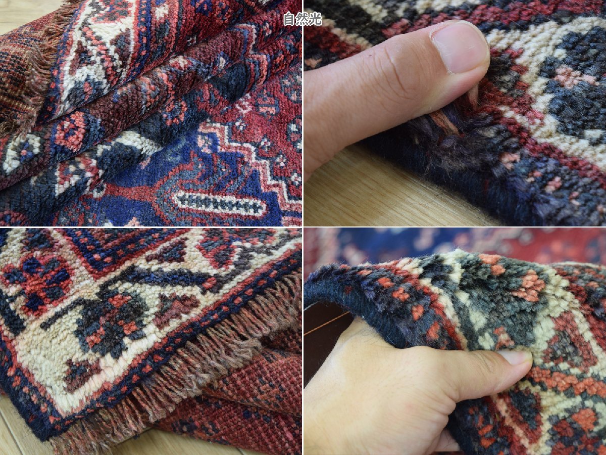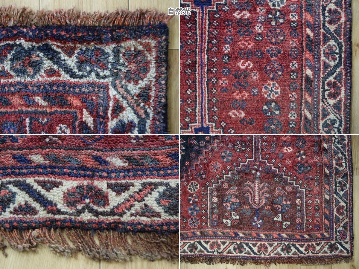 良品 ペルシャ 部族絨毯 シラーズ 縦2.5m 横1.5m 3.5m2 ~3.5帖 No.AD600 - 226 x 155 cm ウール 手織り ラグ カーペット 赤