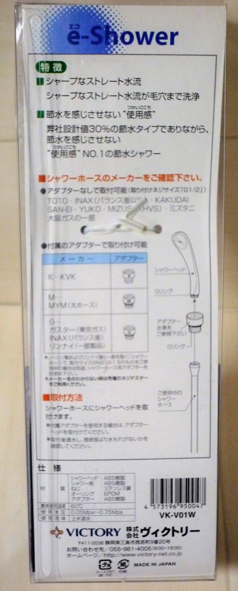 ☆ヴィクトリー VICTORY VK-V01W シャワーヘッド e-Shower◆毛穴の奥まできれいに1,491円
