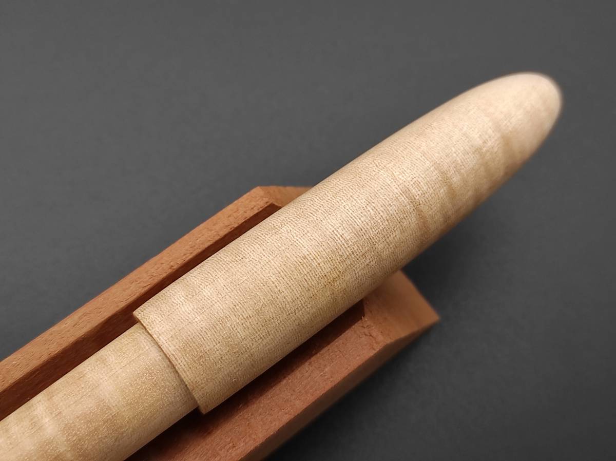 特に冬場等の乾燥により材が縮んだ場合、箱の中にペン軸と、お水を入れたコップを置き約2-3日湿気を含ませることで、自然に戻るはずです。