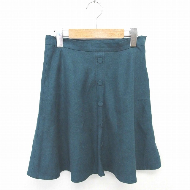 ミニマム MINIMUM スカート フレア ひざ丈 無地 シンプル 飾りボタン サイドジップ 2 緑 グリーン /TT20 レディース