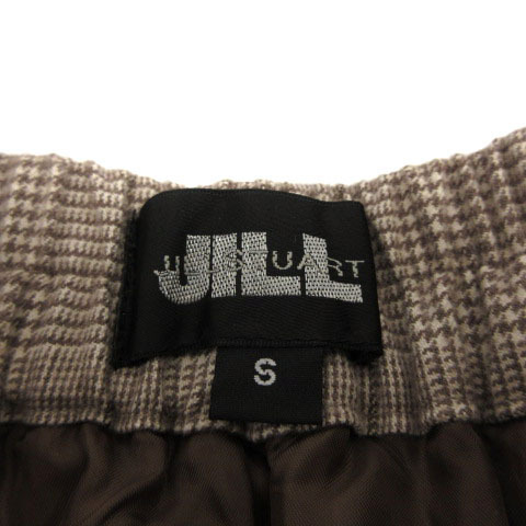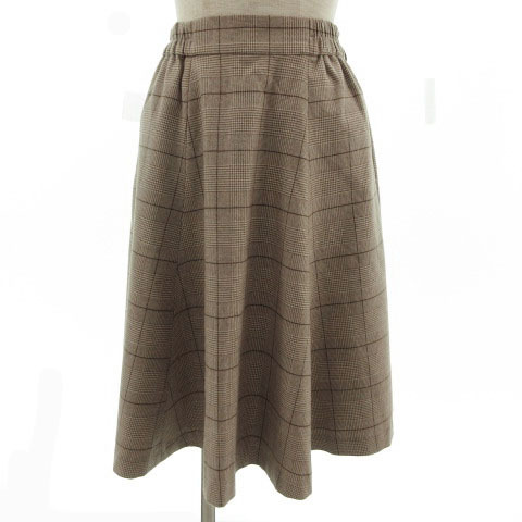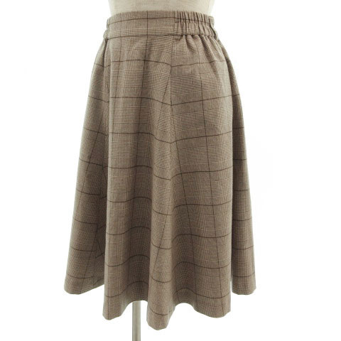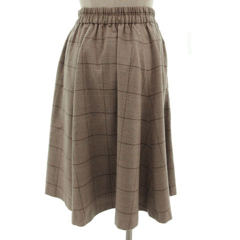 ジルスチュアート JILL STUART スカート フレア ひざ丈 ウエストゴム グレンチェック ブラウン 茶 ホワイト 白 S レディース
