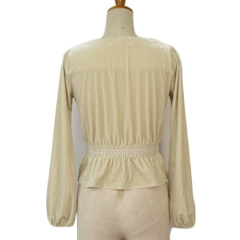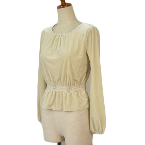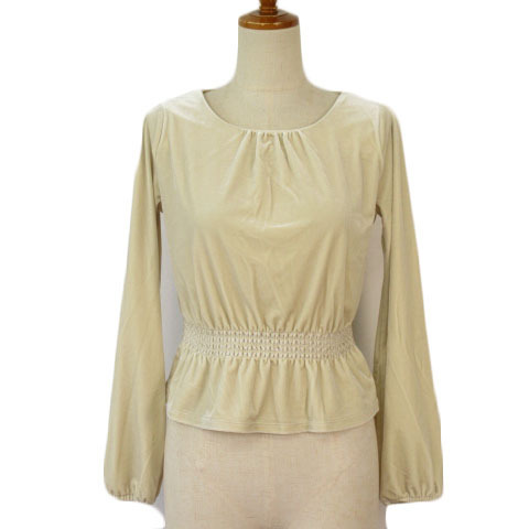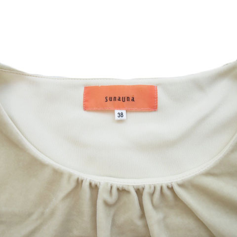 スーナウーナ Sunauna カットソー プルオーバー ギャザー ベロア 長袖 38 ベージュ レディース