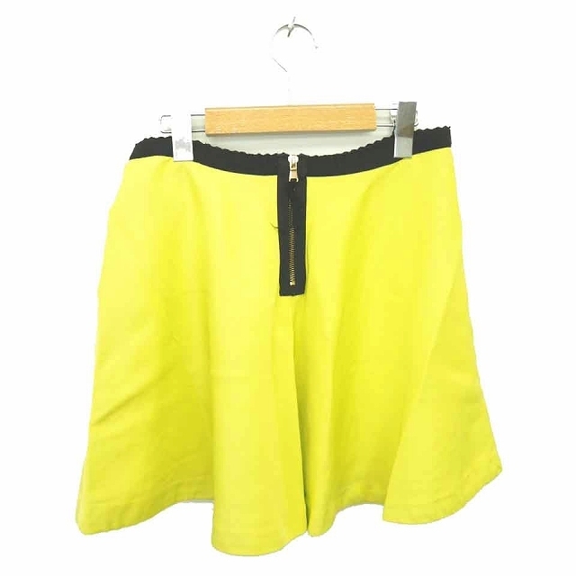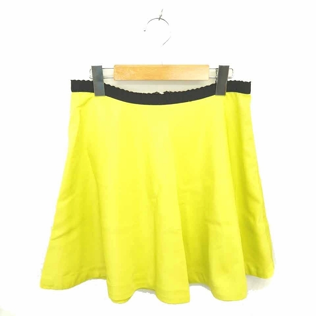 フォーエバー21 FOREVER21 スカート フレア ミニ 薄手 無地 シンプル バックジップ S 黄緑 ライトグリーン /TT1 レディース