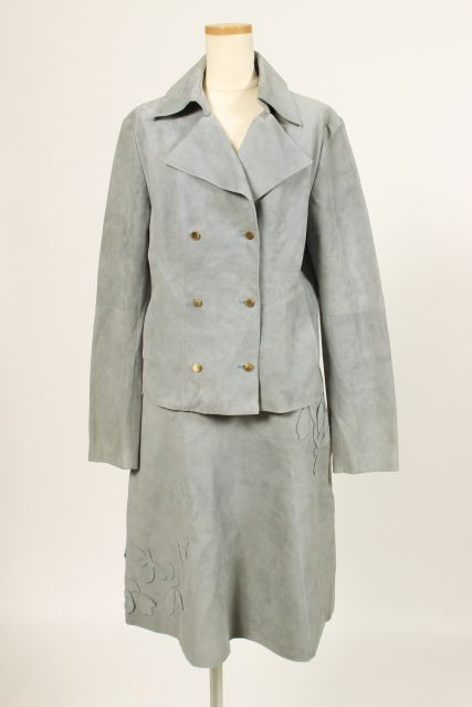 中古 エポカ EPOCA 16SS セットアップ ジャケット スカート ボンディング スウェード レザー 40 青 ブルー /sh0508 レディース 【ベクトル 古着】