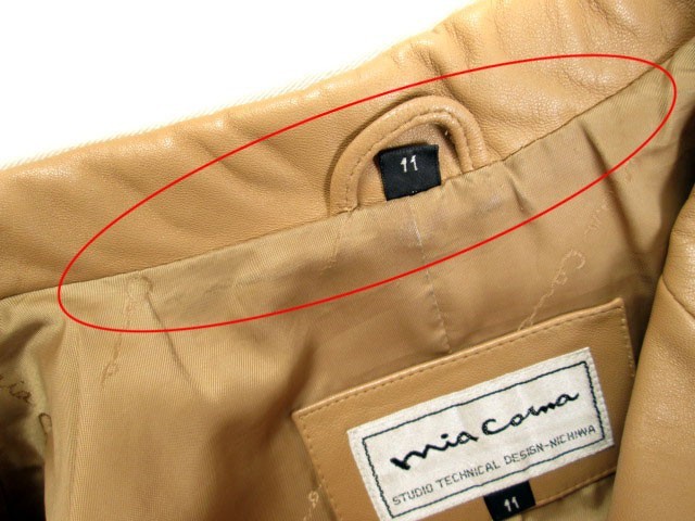ミアコマ mia coma ニチワ コート チェスター レザー 羊革 11 茶 レディース