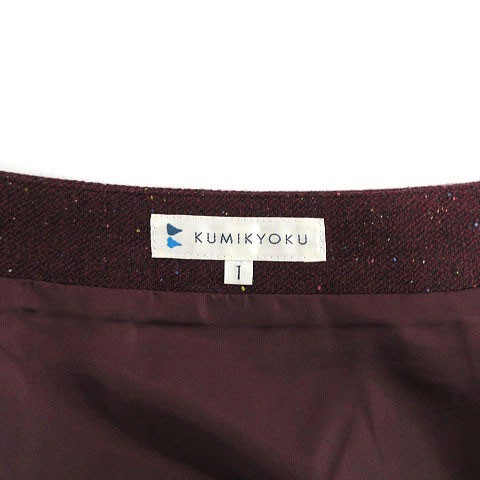 クミキョク 組曲 KUMIKYOKU スカート ひざ丈 シルク混 総柄 ツイード エンジ系 パープル ミックス糸 1 レディース