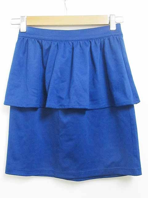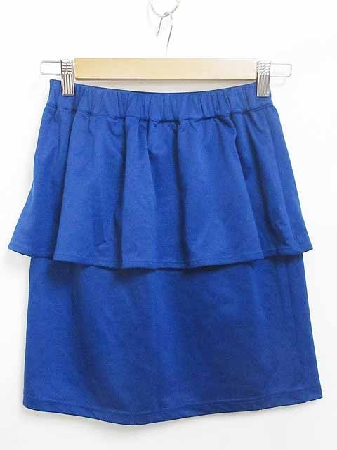 未使用品 ケイビーエフ KBF アーバンリサーチ フレアスカート 膝丈 ペプラム タグ付き ウエストゴム 無地 青 F レディース