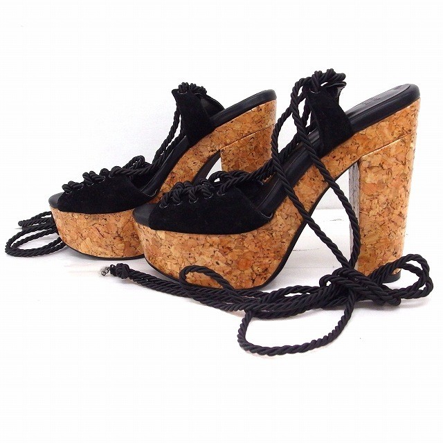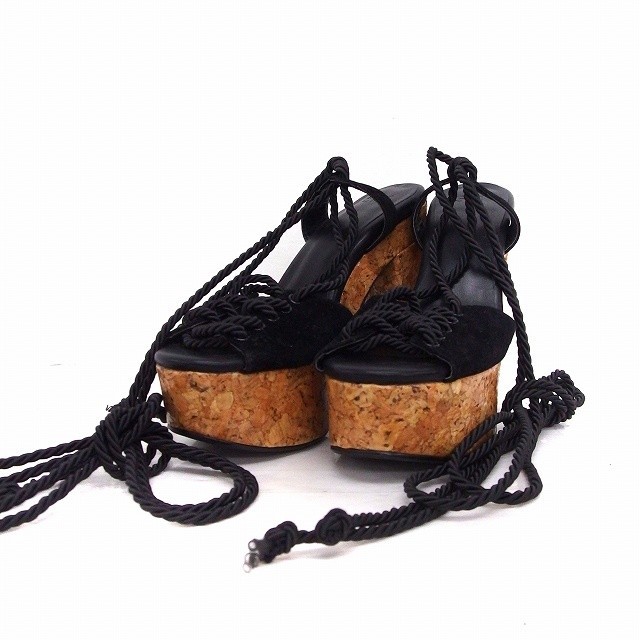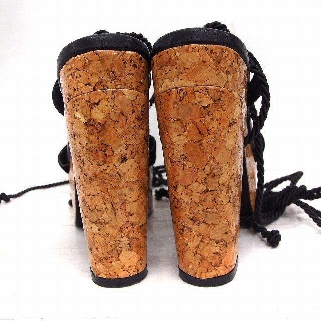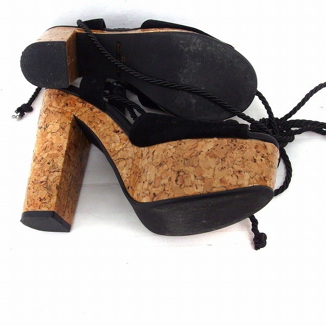 スライ SLY 靴 シューズ サンダル レースアップ コルク チャンキーヒール ハイヒール S ブラック 黒 /FT28 レディース