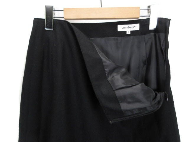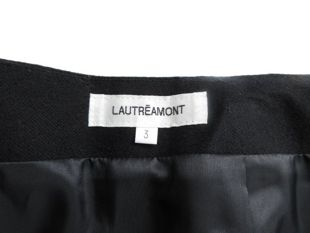 ロートレアモン LAUTREAMONT スカート フレア タック ウール 3 黒 ブラック レディース