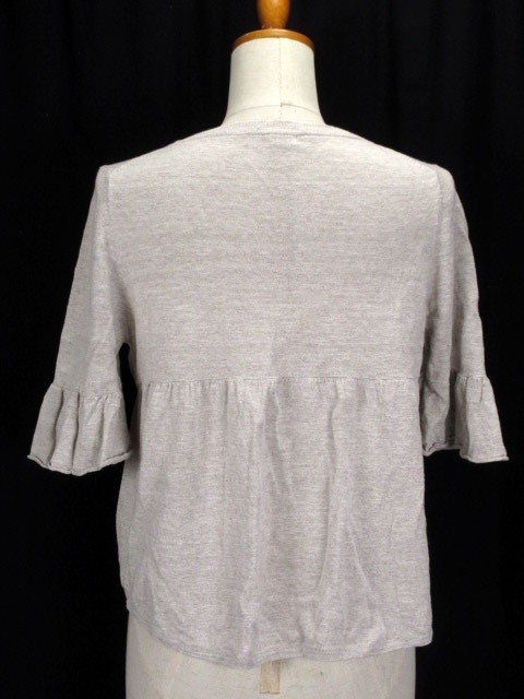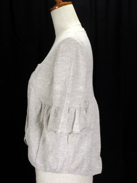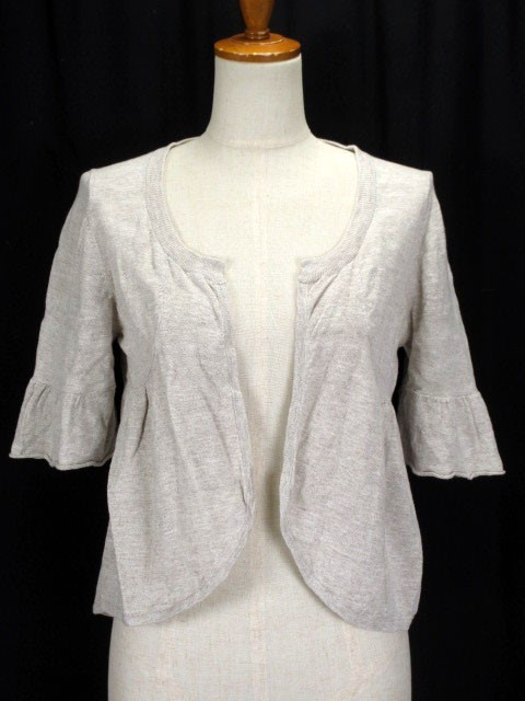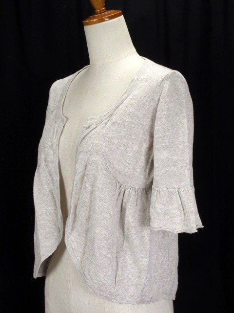ビュルデサボン bulle de savon カーディガン ニット フリル 五分袖 リネン F ベージュ レディース
