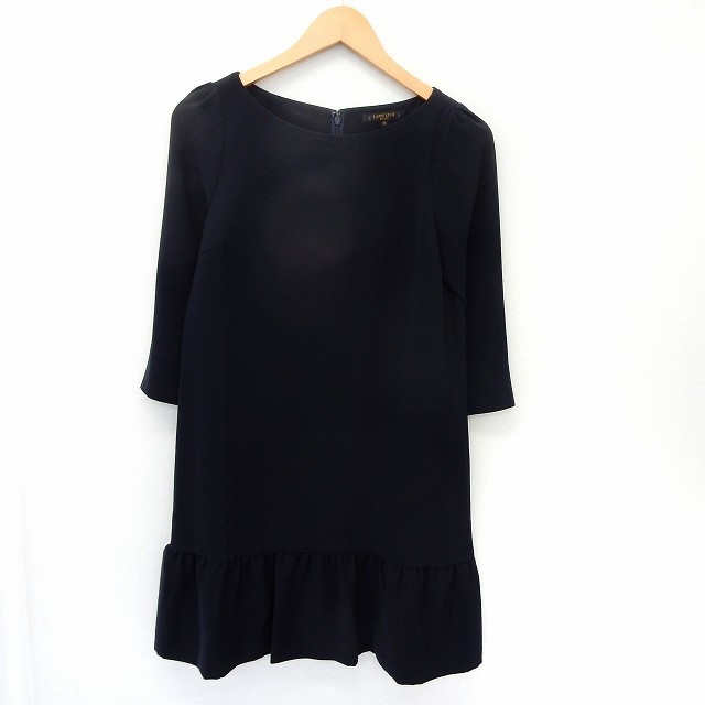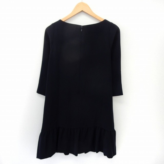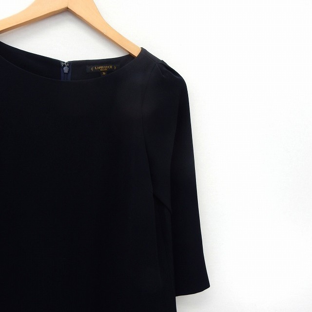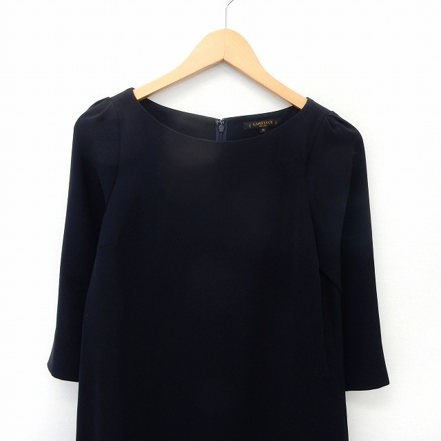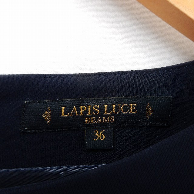 ラピスビームス LAPIS BEAMS ワンピース 膝丈 裾フレア 七分袖 シンプル バックジップ 36 ネイビー /ST46 レディース