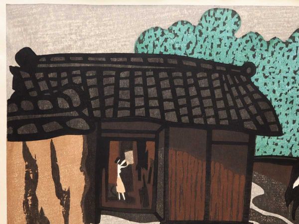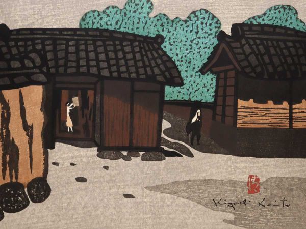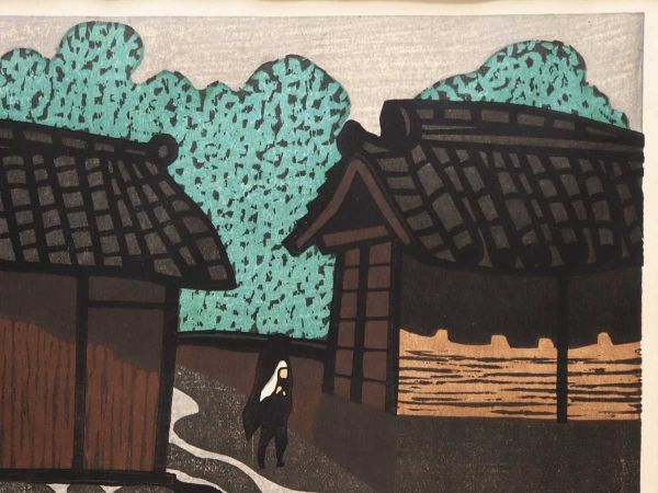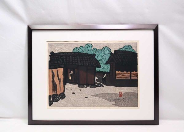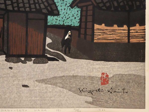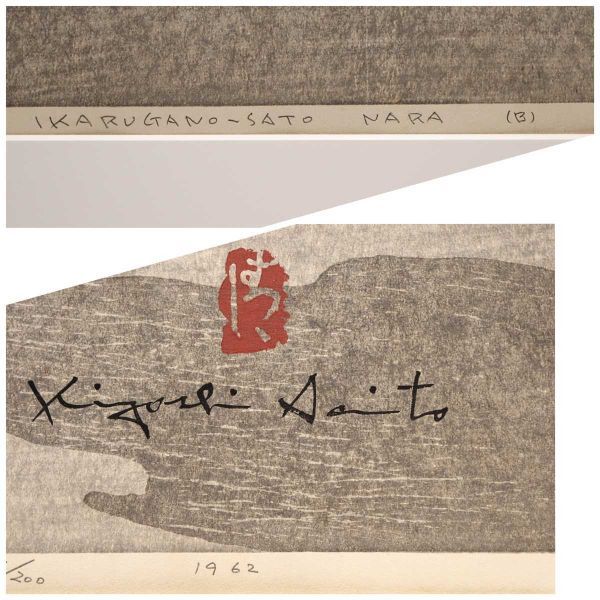 真作 斎藤清 1962年木版画「IKARUGA NO SATO NARA 斑鳩の郷 奈良」画52×38cm 福島県出身 日本伝統表現と西洋の近代造形 斉藤清 5301